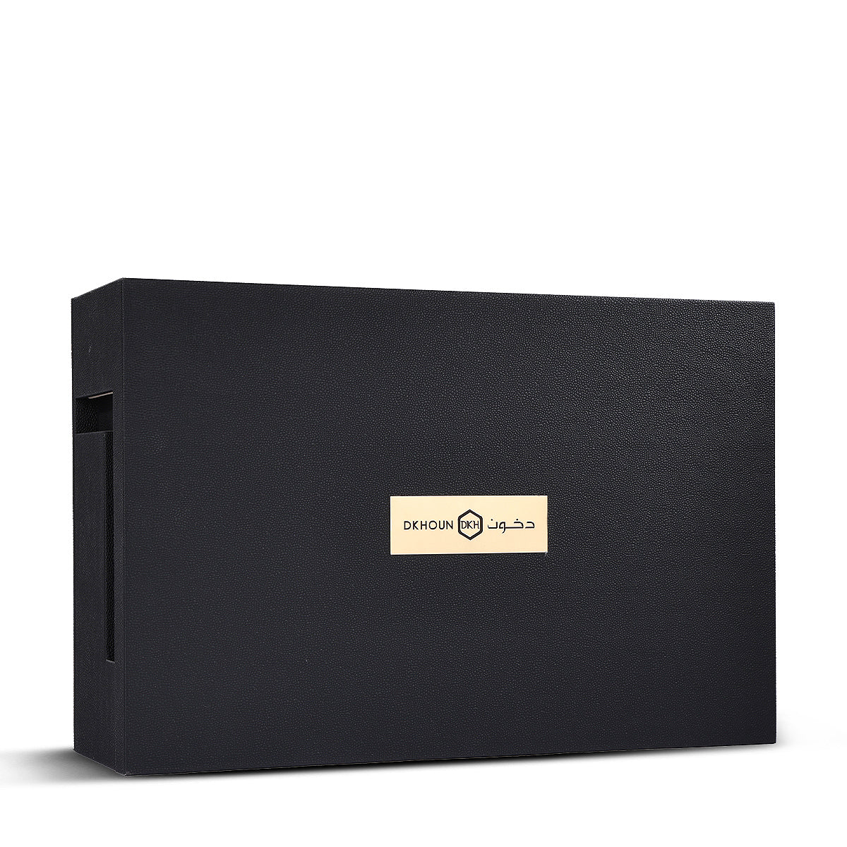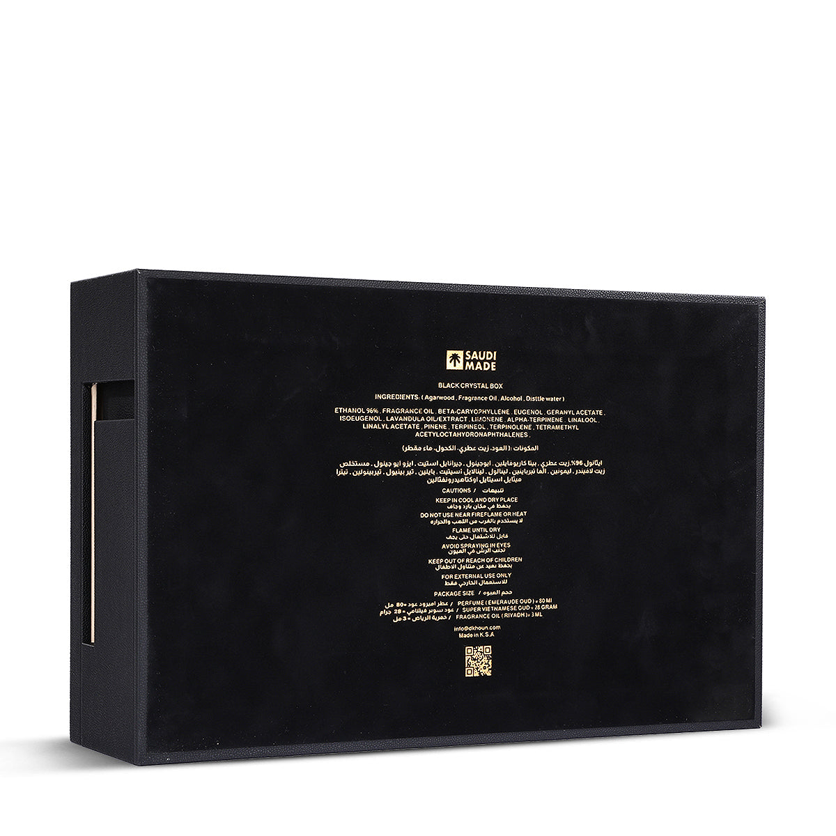 بوكس اسود كرستاله بوكس فاخر يجمع نخبة من عطور وبخور دخون في تنسيق واحد يعكس الفخامة