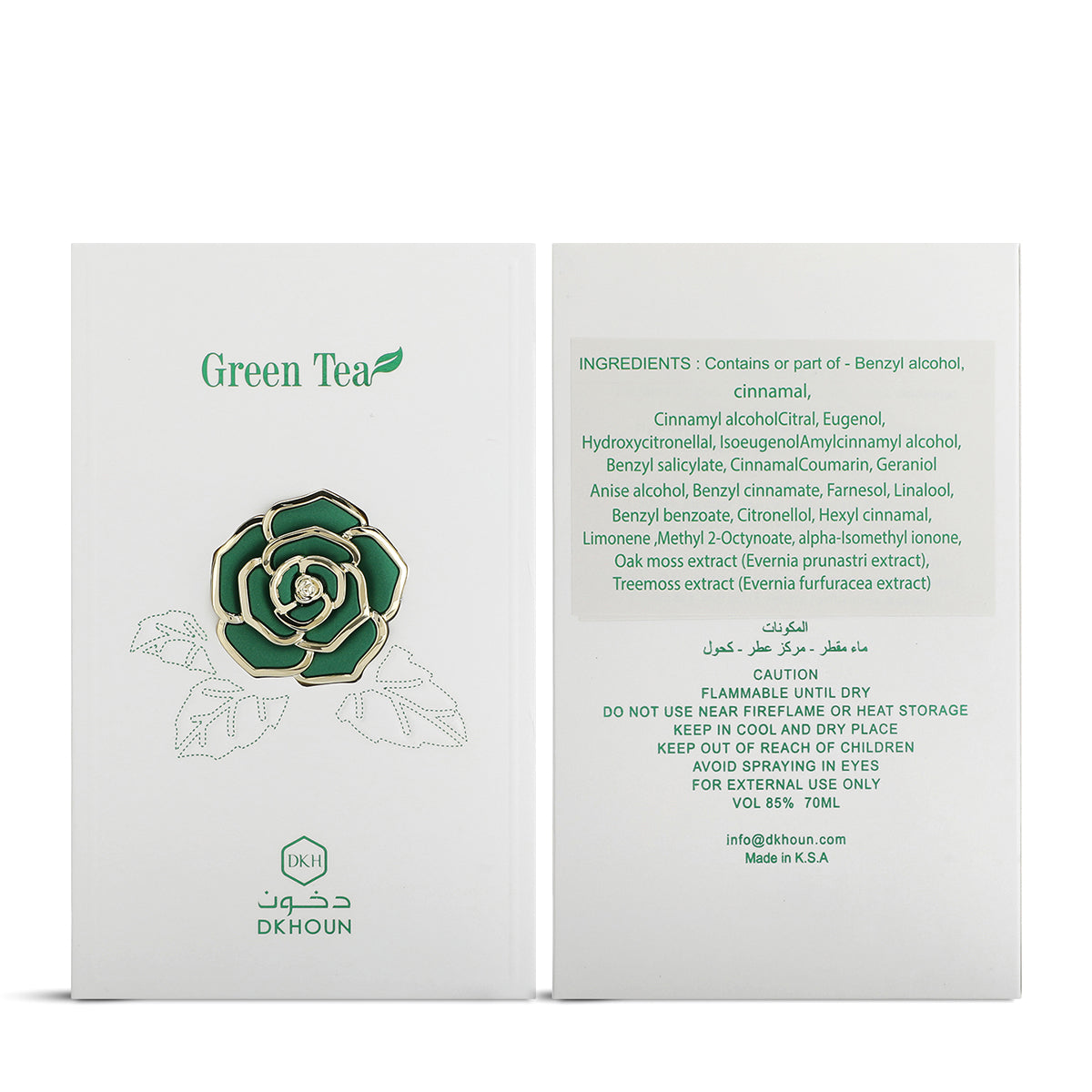 عطر الشاي الأخضر هو عطر رائع يمزج بين مكونات طبيعية وعطرية مميزة تجعله يناسب جميع الأذواق. يفتح هذا العطر بنفحات من عشبة الشيح العطرية المنعشة، التي تعطي العطر لمسة من الانتعاش والحيوية.
