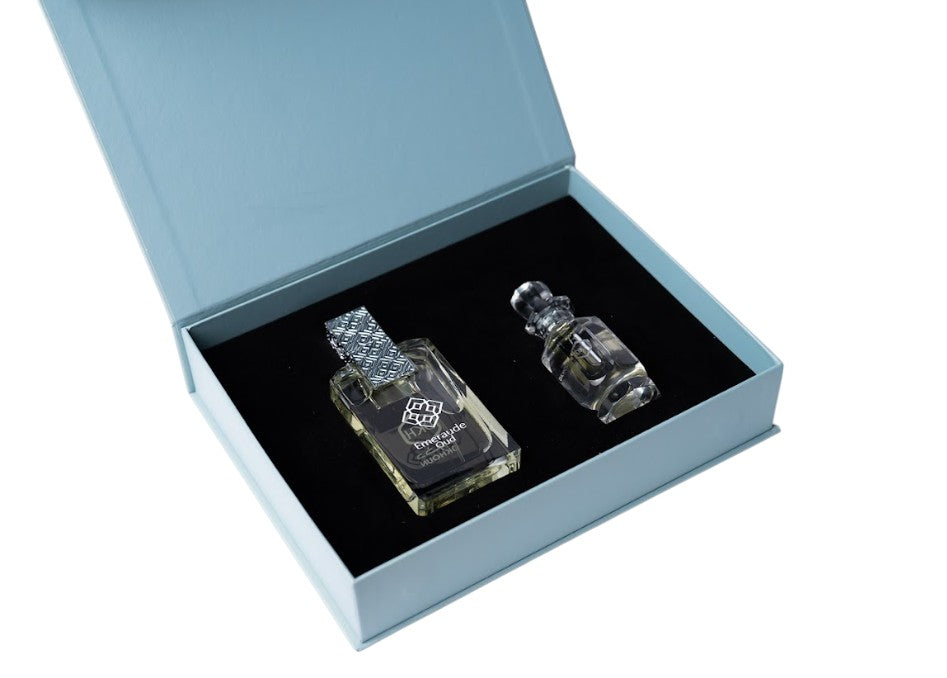 عطر اميرالد عود: عبير شرقي فاخر يمزج بين العود الكشميري والبان العماني، يمنحك إحساسًا بالفخامة مع كل رشة