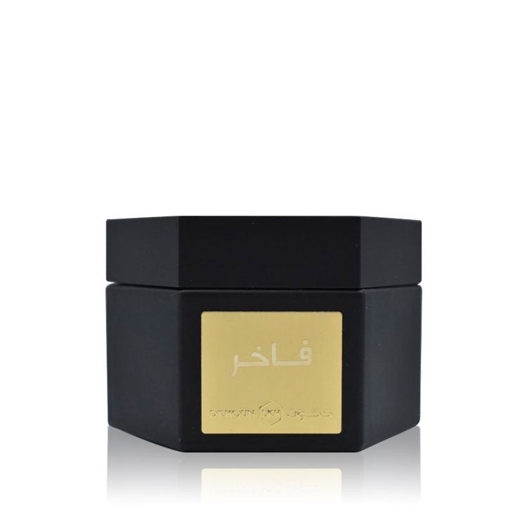 يتم إعداد بخور الفاخر هذا بمزج العود الفاخر مع مزيج من المكونات الطبيعية الأخرى، ومن بينها الباتشولي الطبيعي الفاخر الذي يعطي الرائحة لمسة من العمق والدفء، والورد البرتغالي الذي يمنح الرائحة لمسة من الحلاوة والنعومة